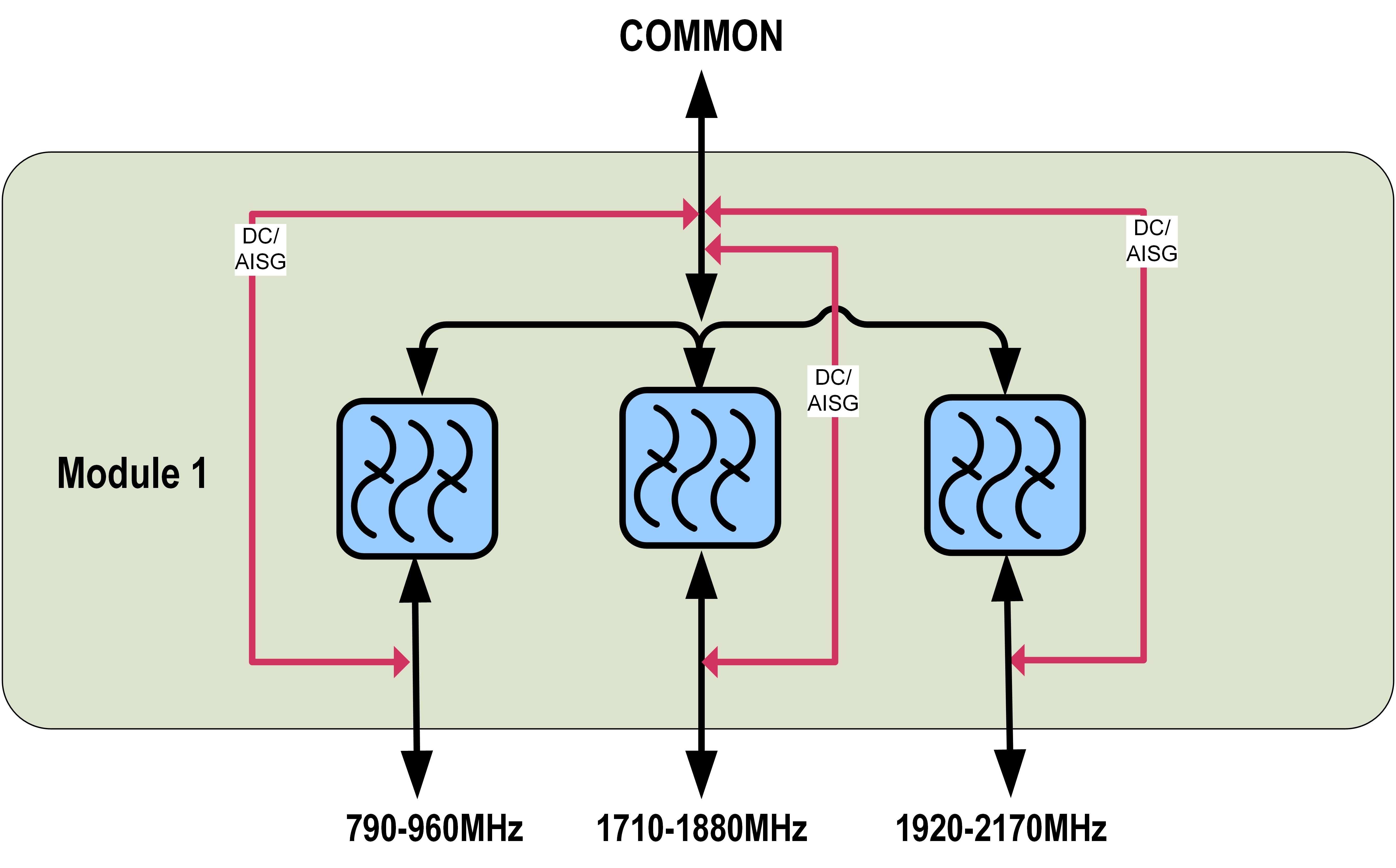 | dc/AISG Pass-through, demultiplexer | Branch 1 | Branch 2 | Branch 3 |