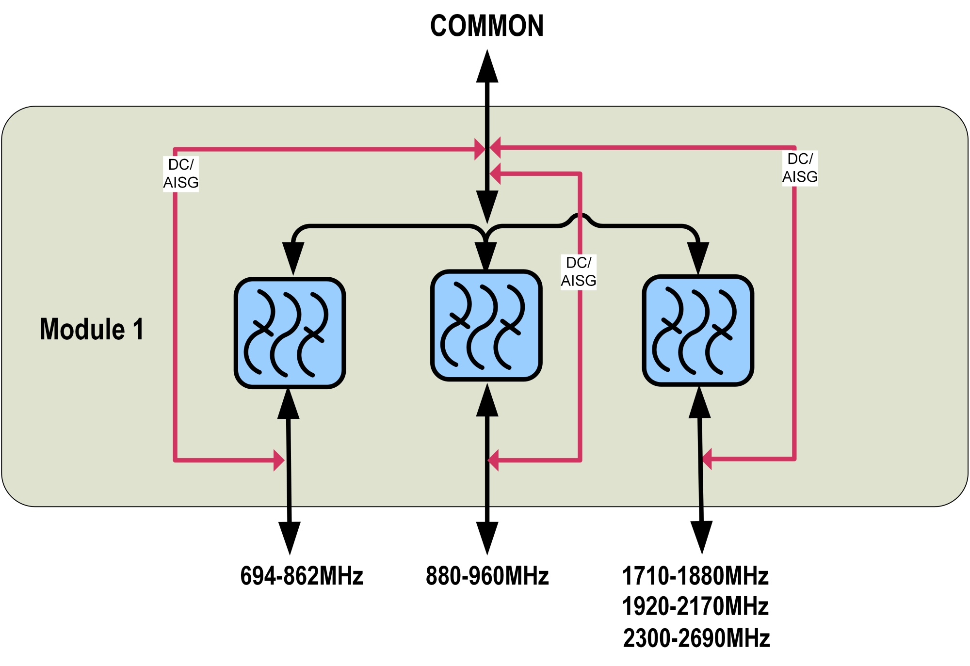 dc/AISG Pass-through, demultiplexer Branch 1 | Branch 2 | Branch 3
