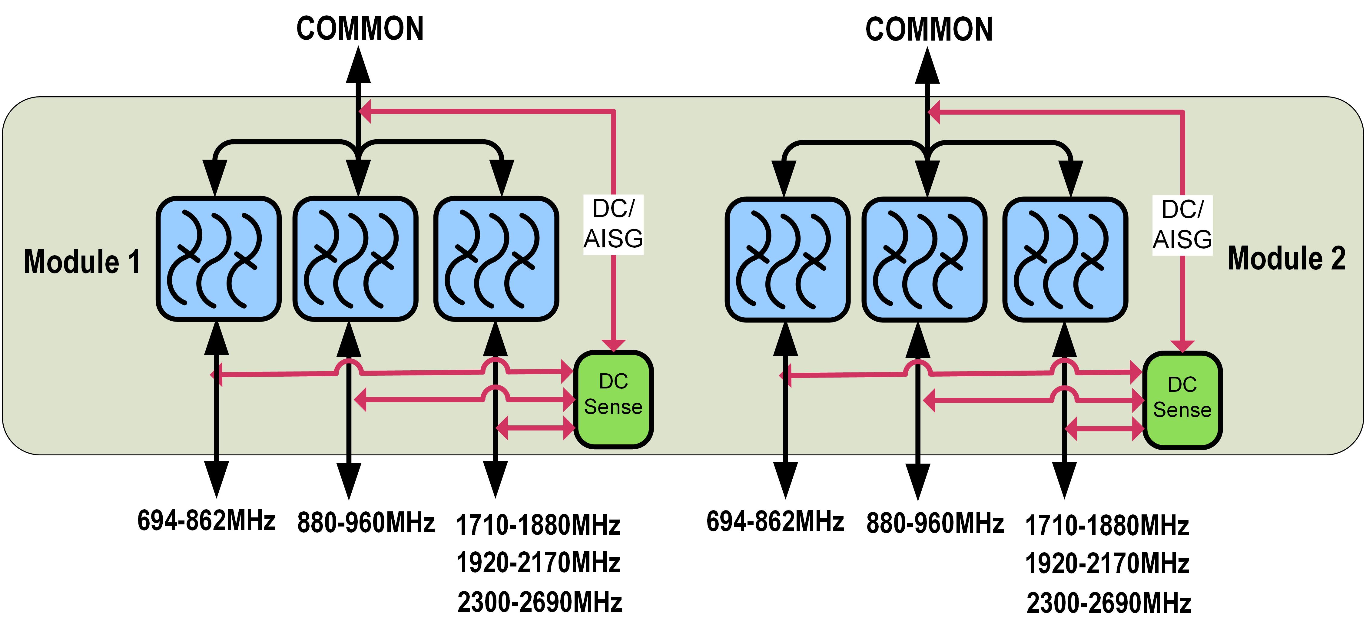 | dc/AISG Pass-through, demultiplexer | Autosensing |