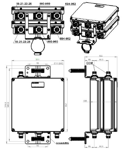 - Designed for network modernization application, introduction of LTE700 and LTE800 on existing site