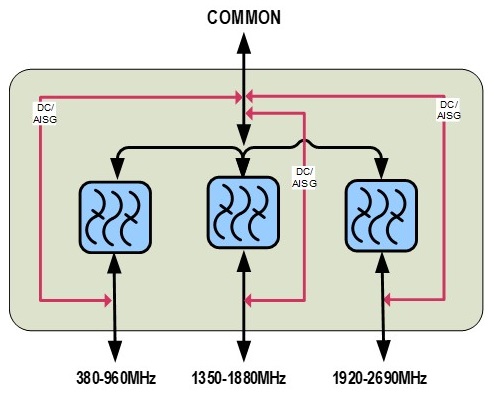 dc/AISG Pass-through, demultiplexer Branch 1 | Branch 2 | Branch 3