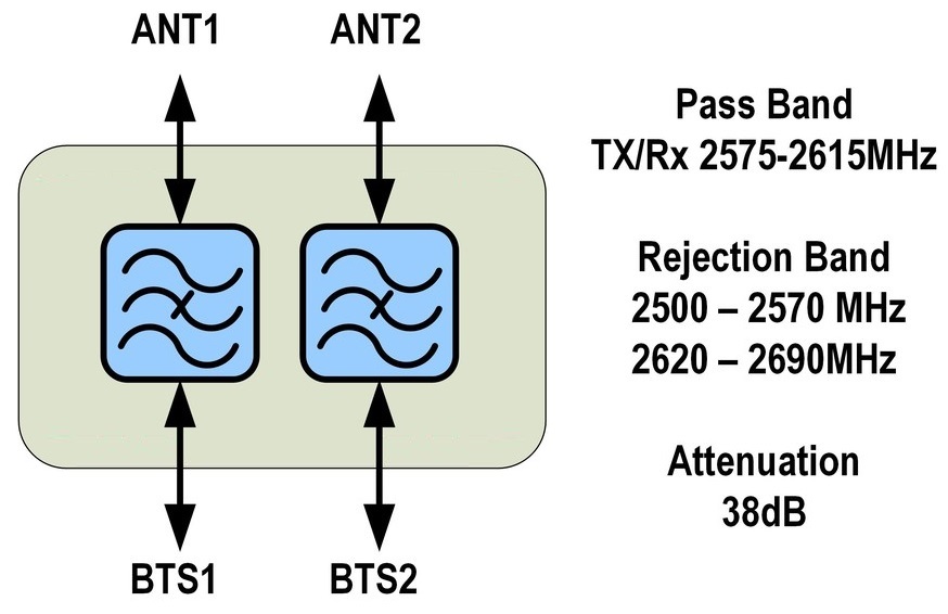 TWIN-IMF 2600 MHz,B38 Rejects 2500-2570&2620-2690, 38dB