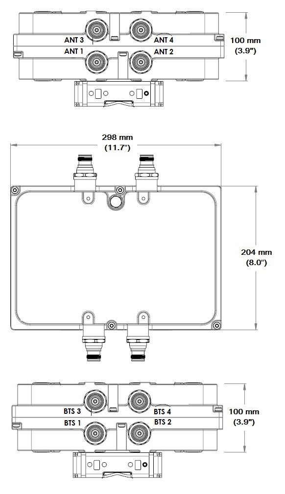 - Supports dual band PCS/AWS radios with diplexed ports or diplexed single band radios
