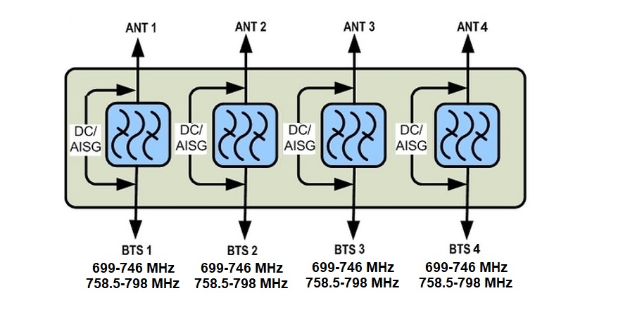Quad IMF 700-750MHz Reject guard 757-758 MHz, DC Pass, 4.3-10 connectors