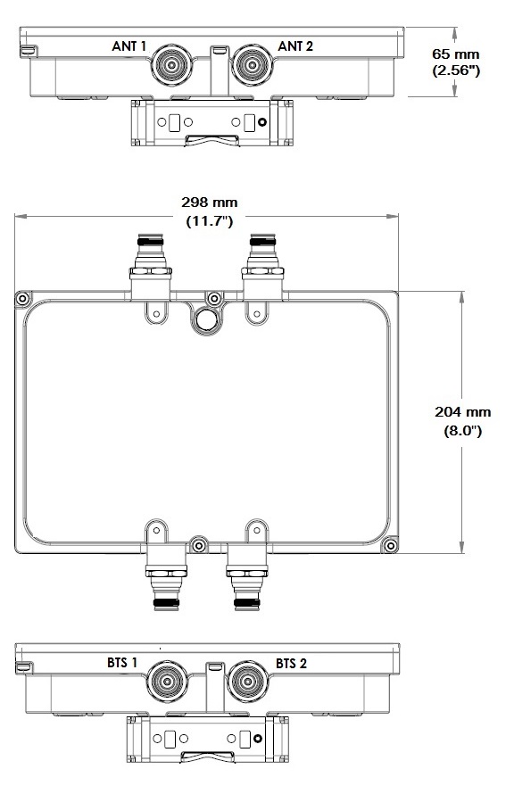 - Supports dual band PCS/AWS radios with diplexed ports or diplexed single band radios
