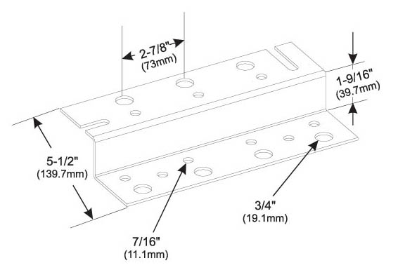 Horizontal Z-bracket, 11 in, for seven coaxial cable runs
