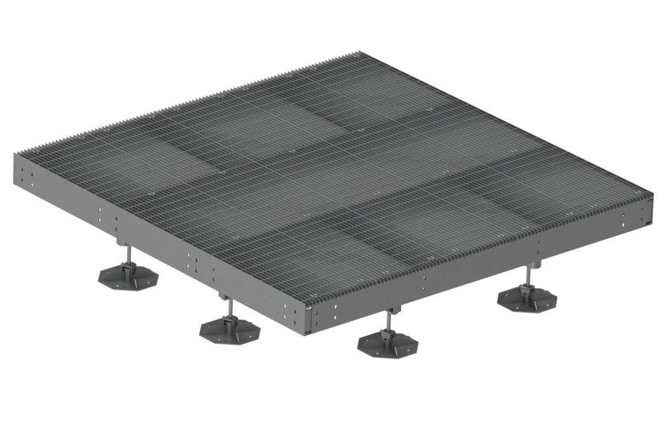 Concealed Foot Equipment Platform, 10 ft x 10 ft, base with ten displacement feet
