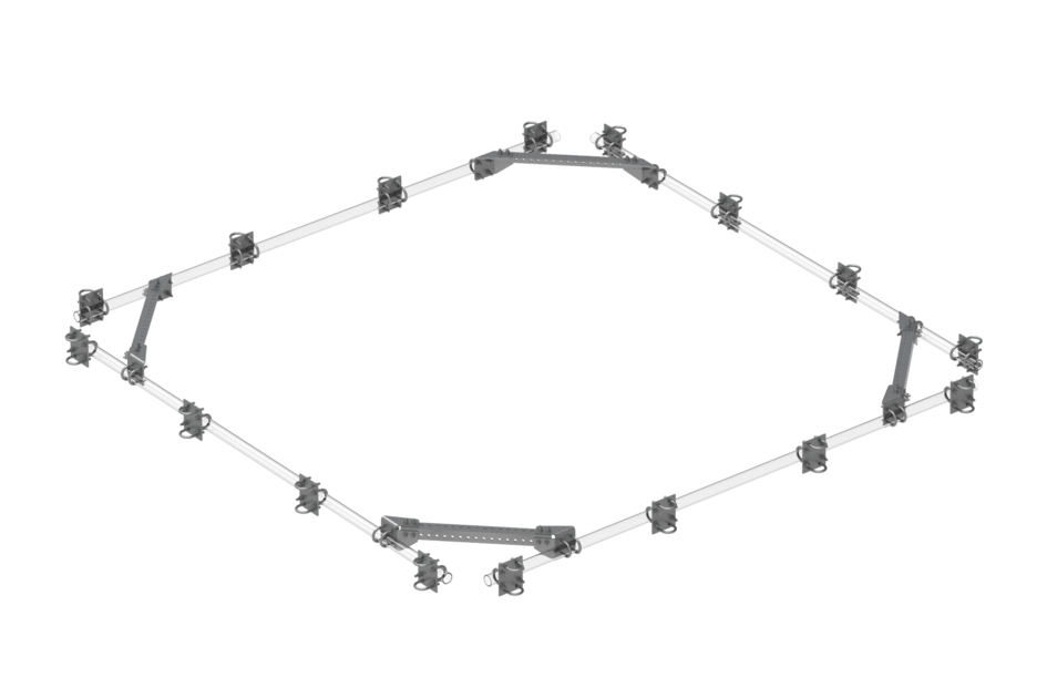 4-sector Support Rail Kit with 2-7/8” x 150” Rail, Adjustable Corner Reinforcement, & Crossover Kits for 2-3/8” or 2-7/8” Pipes