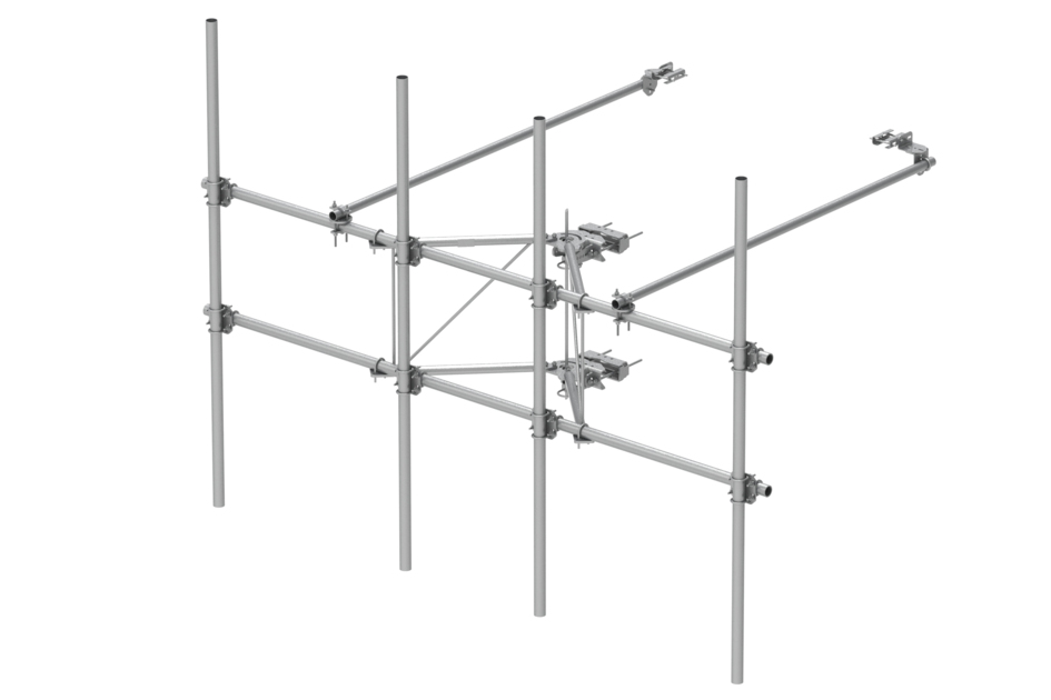 | Included | Frame | Pipe mounts | Plain end pipes (4) | Stiff arms (2) | Tower attachment |